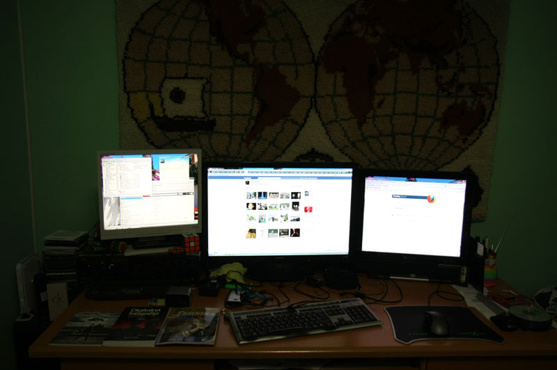 My schoolmate Bajc was so kind to sell me his old GPU (graphic processor unit). I just had to install a new cooling system on it and it was ready to go. Now I can plug 4 monitors on my computer, but unfortunately I have only 3.